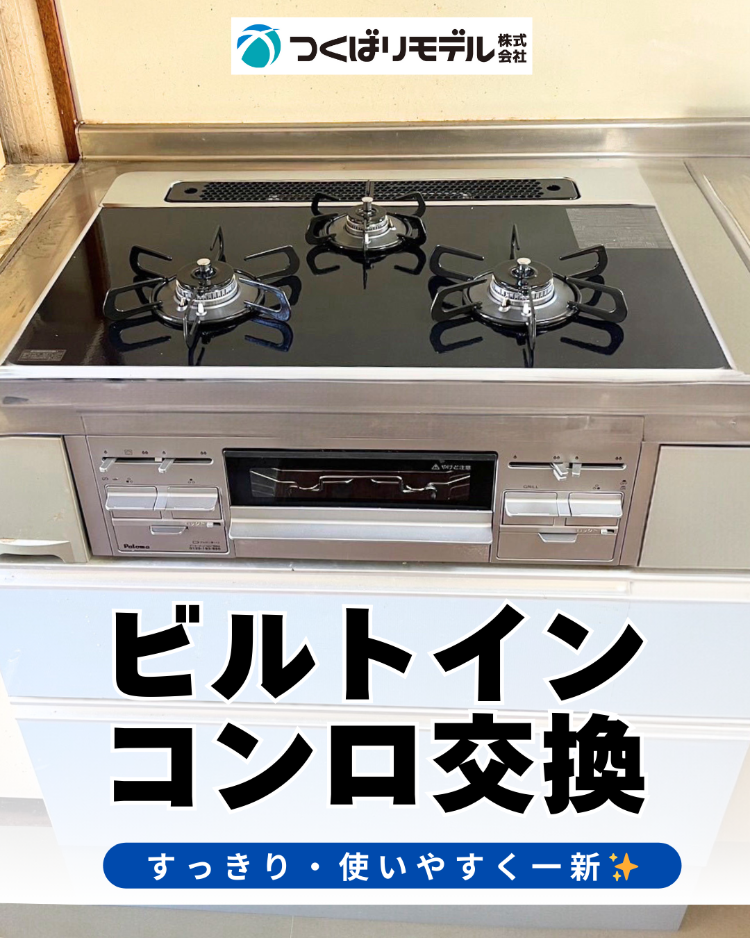 パロマ製のビルトインコンロへ交換しました。