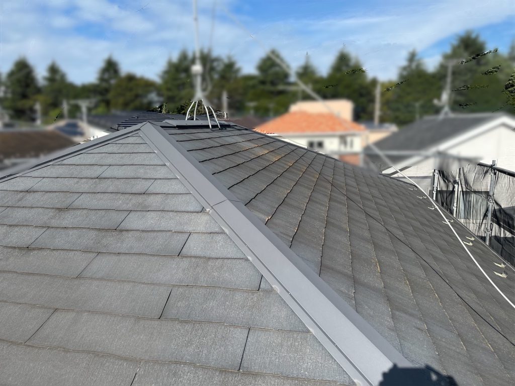 屋根は下塗り・中塗り・上塗りの3回塗りを行い、板金部分にはサビ止め処理を施しました。