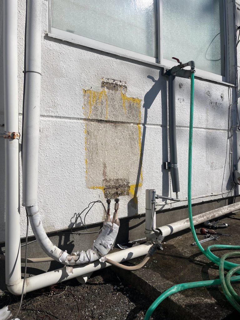 現地状況を確認のうえ、既存の給湯器を撤去し、新しい給湯器へ交換工事を実施。
