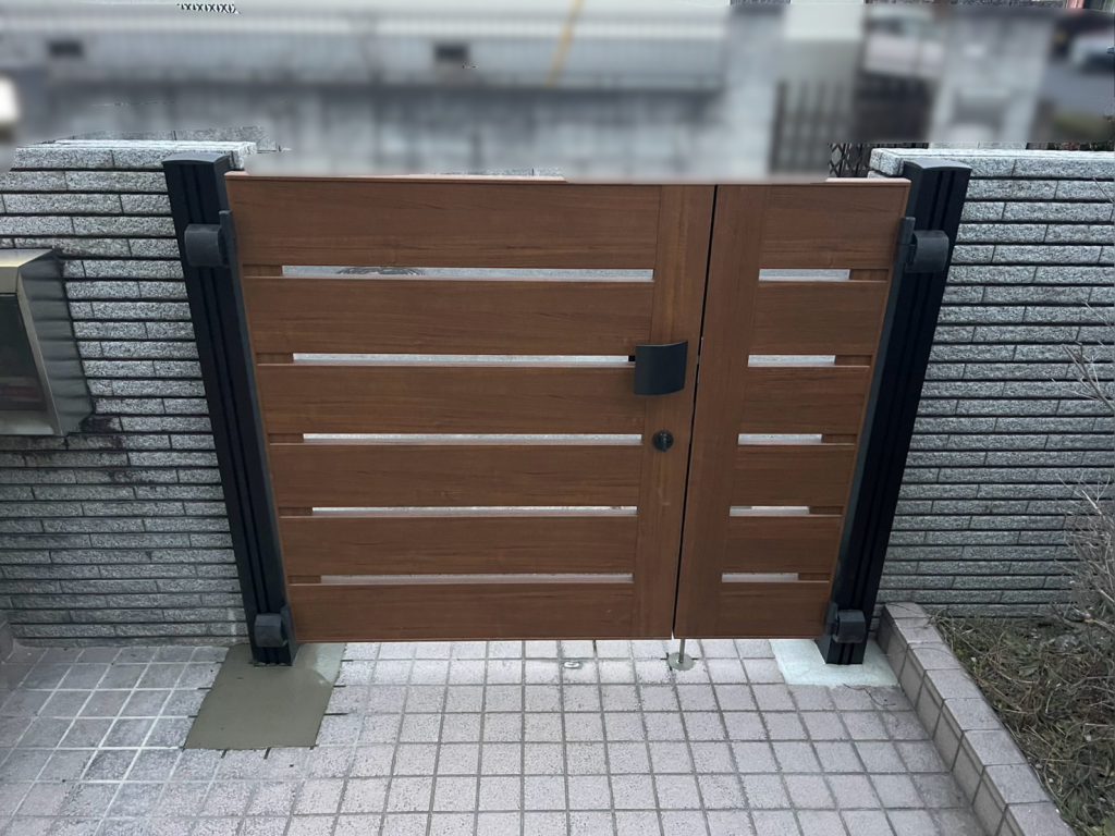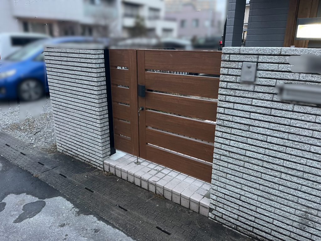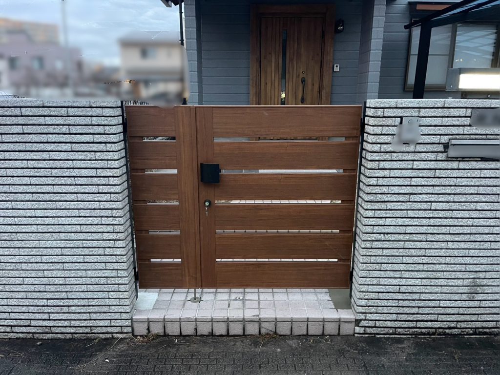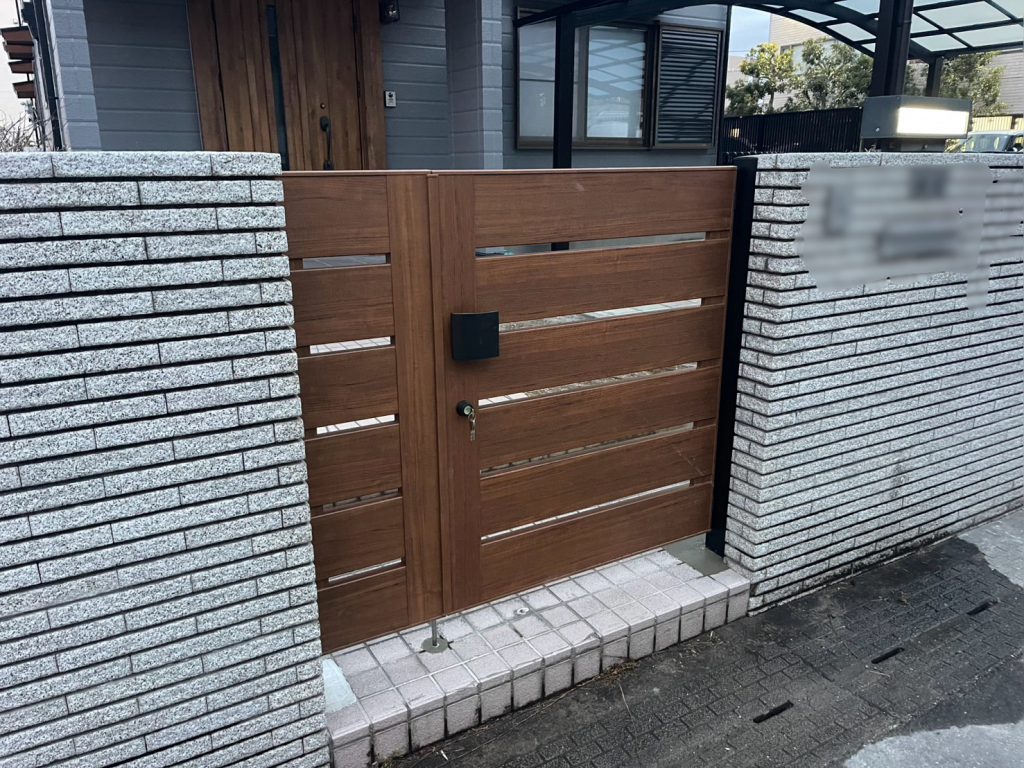 木目調の質感が住まいの外観と調和し、門まわりに上質な印象を与えます。