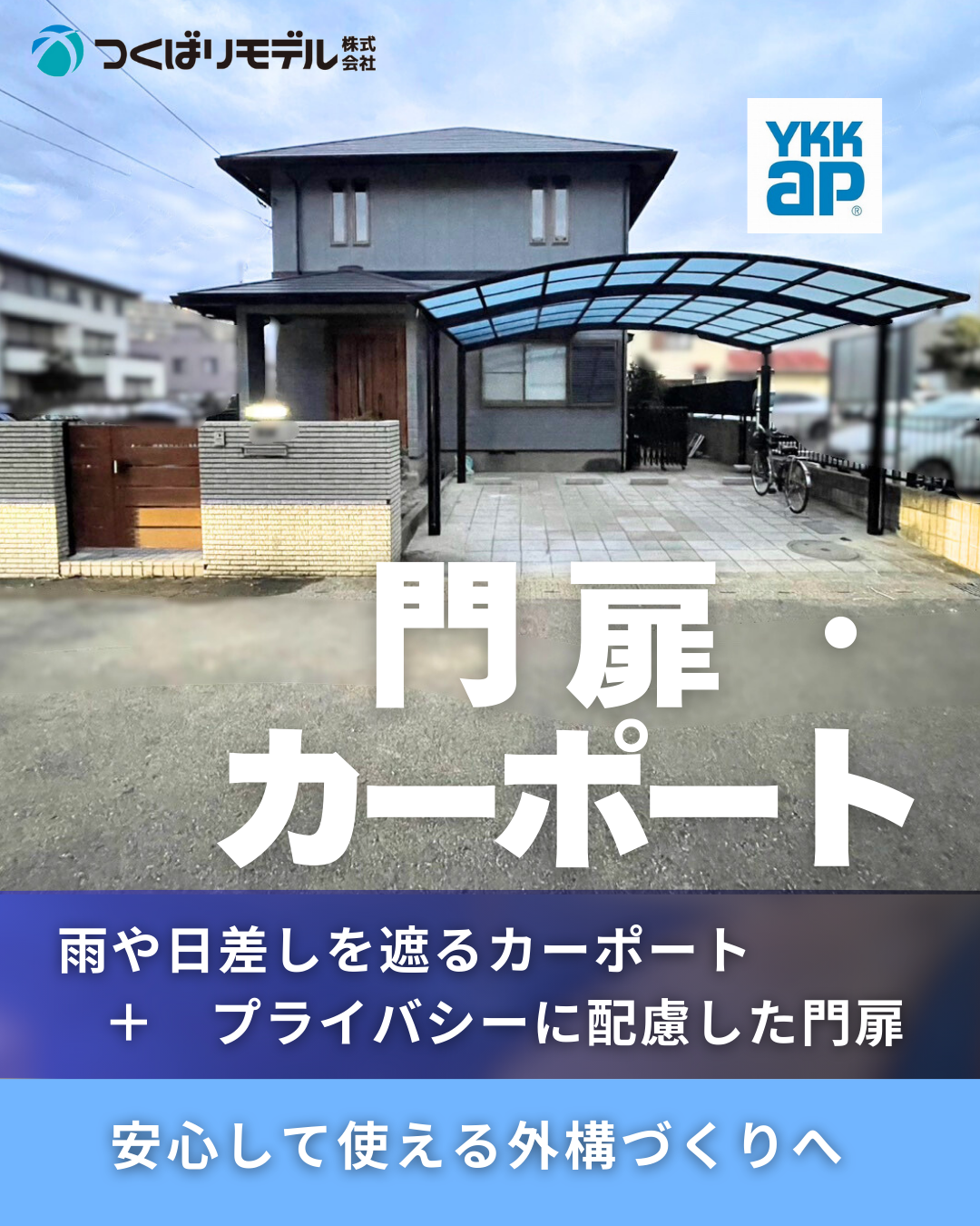 #カーポート#つくばリフォーム#つくば外構工事#YKKAP#門扉#アリュースシリーズYKKAP#門扉交換#カーポート2台