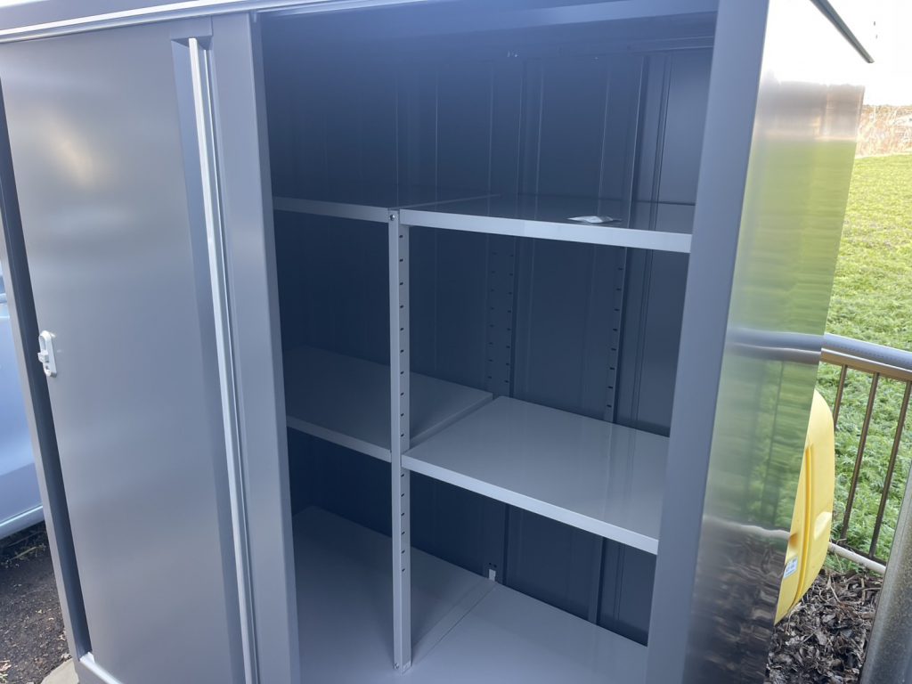 内部には棚が付いており、掃除道具や備品などの収納にも便利にお使いいただけます。