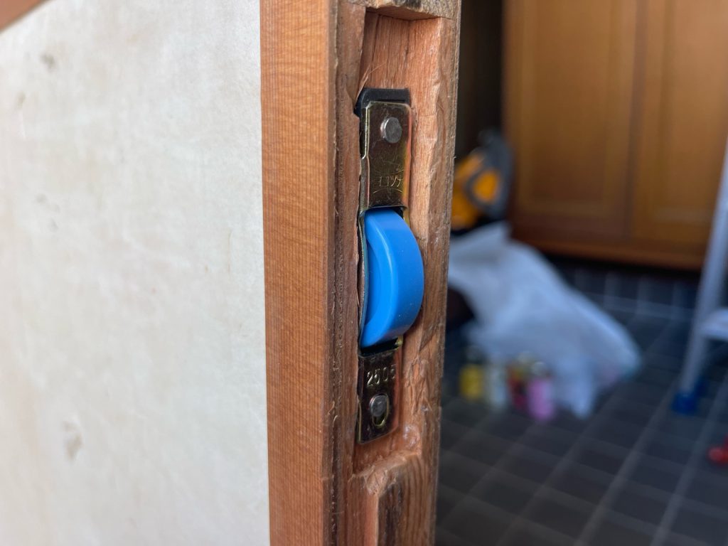 和室の引き戸の動きが悪くなっていたため、戸車交換・敷居レール交換を行いました。スムーズに開閉できるよう改善しています。