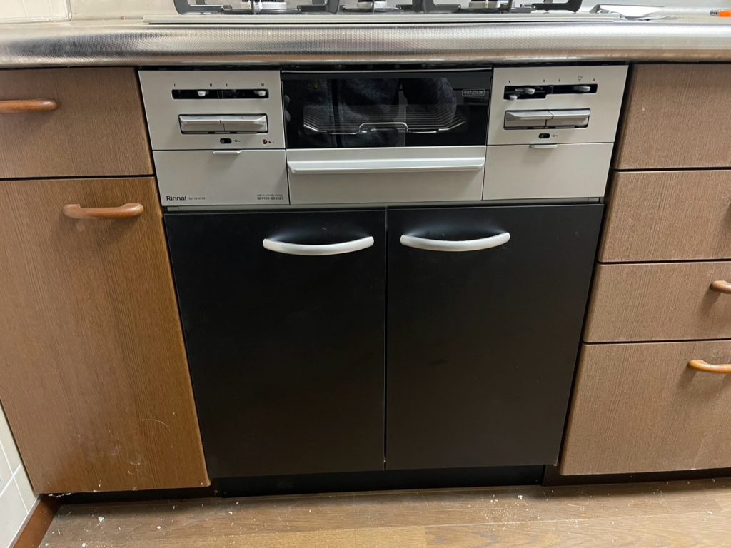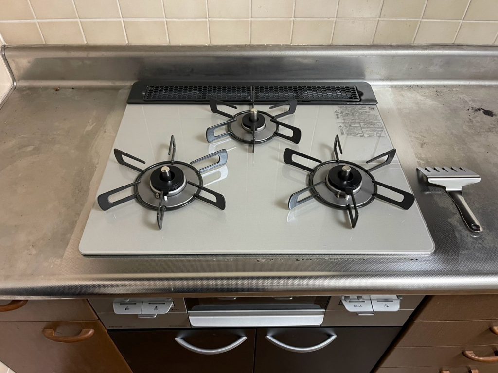 ガスコンロ+キャビネットへ変更しました。収納スペースが増え、使いやすいキッチンになっています。