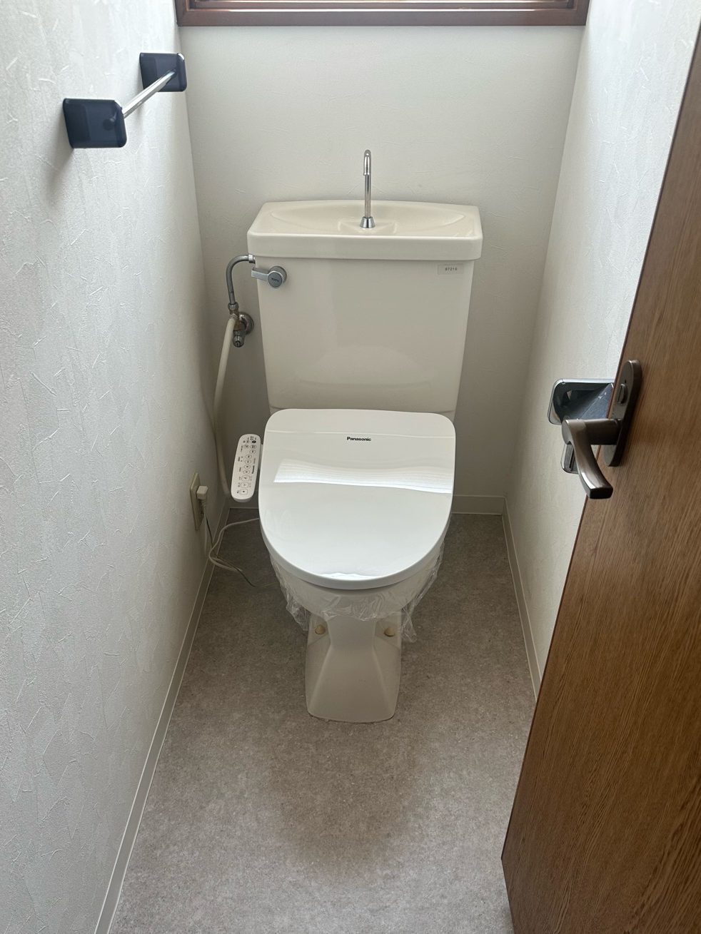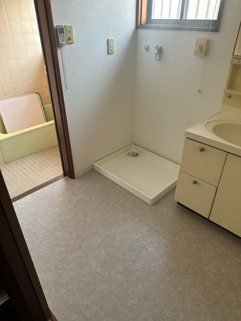 室内全体のクロス張替えを行いました。また、トイレ・洗濯機まわりはクッションフロアも張替えを行い、水回りも含めてきれいに仕上げています。