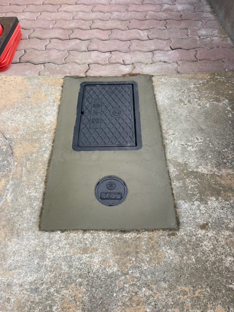 また、車両の荷重により破損していた水道メーター・止水栓の蓋は、枠ごと交換しました。耐荷重3t仕様へ変更し、安心して使用できる状態になっています。